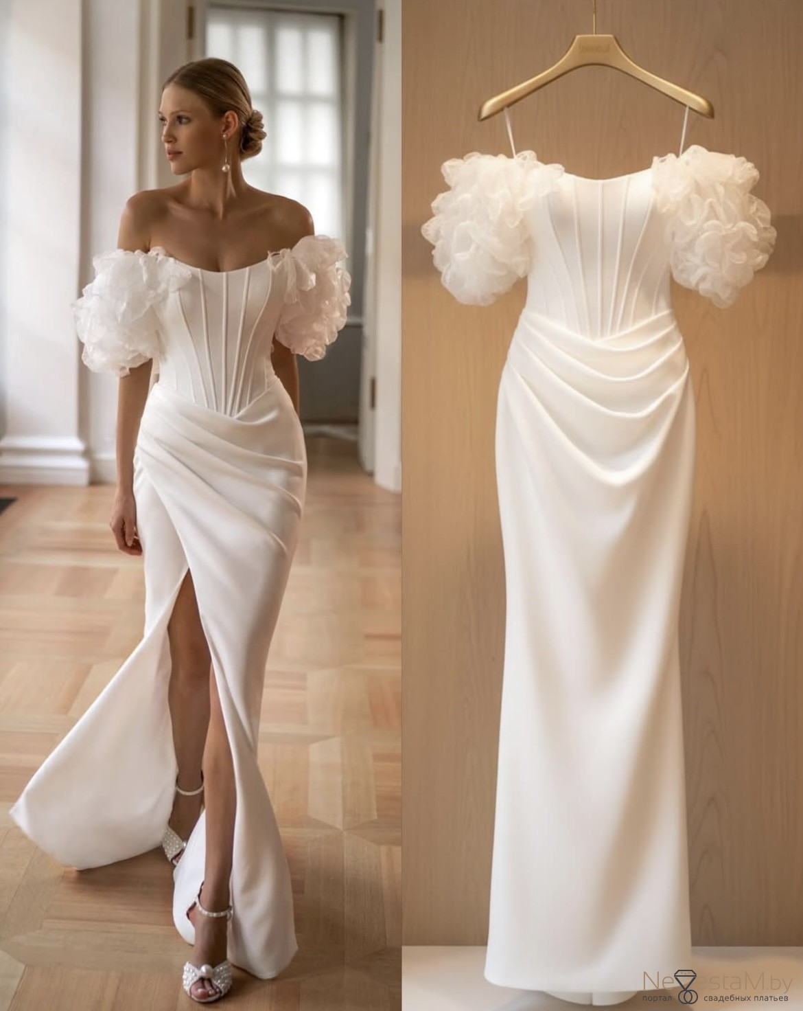 Свадебное платье рыбка с вырезом луна и красивыми рукавами. Размер - 42-44. _________________________ Больше моделей в нашем профиле в инстаграм.