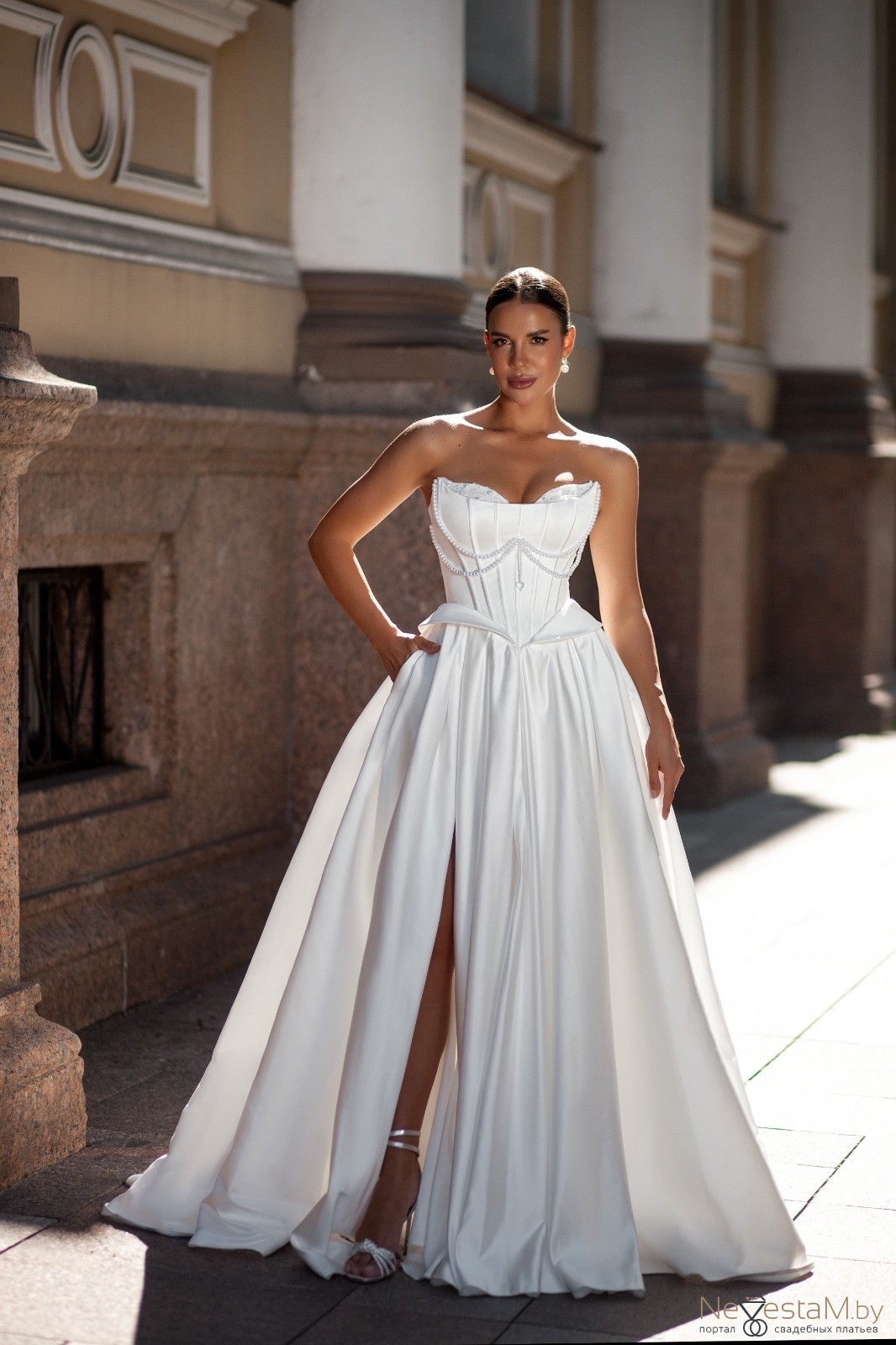 Свадебное платье с красивым корсетом. Возможны рукава или буфы. Размер - 42–44-46. _________________________ Больше моделей в нашем профиле в инстаграм.