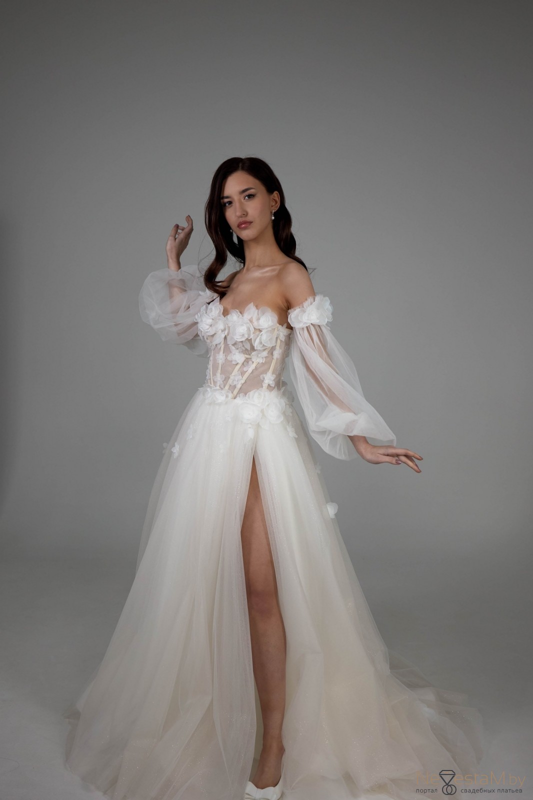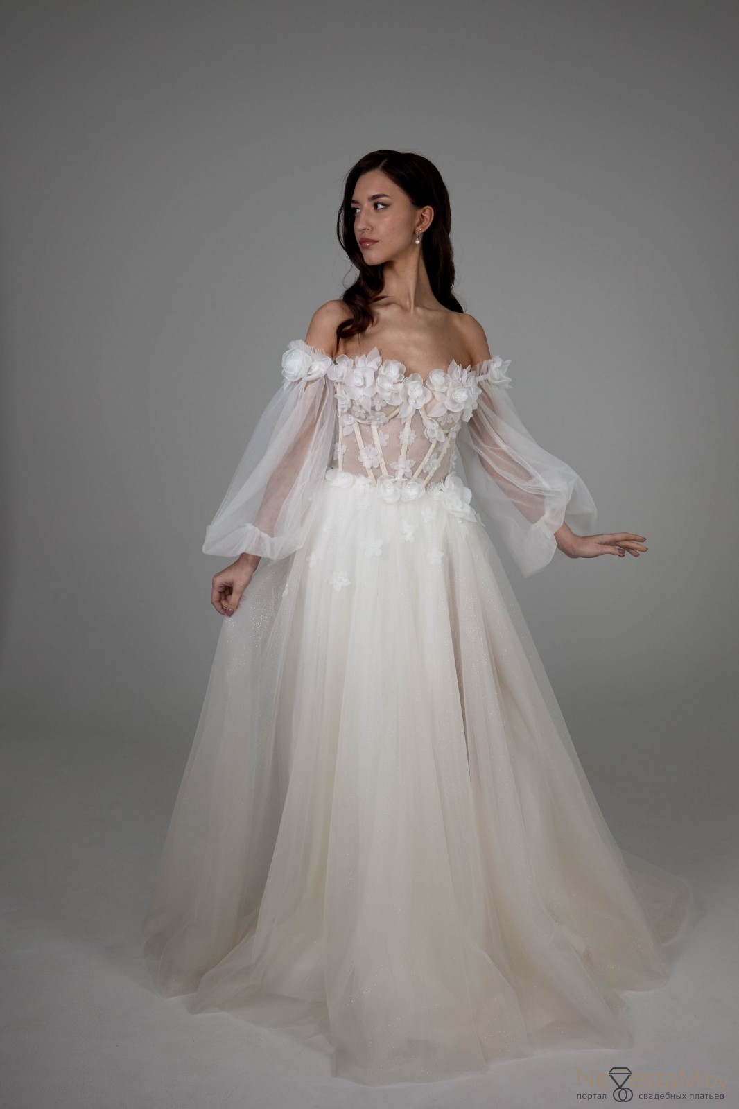 Невероятное свадебное платье с объёмными цветами ручной работы. Размер - 42-44-46. _________________________ Больше моделей в нашем профиле в инстаграм.