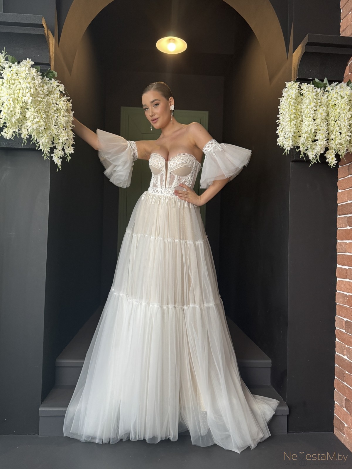 Свадебное корсетное платье в стиле БОХО. Съёмные рукавчики. Размер - 42-44. _________________________ Больше моделей в нашем профиле в инстаграм.
