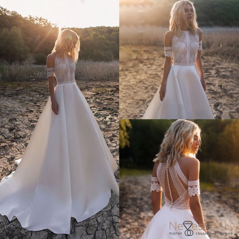 Свадебное платье в стиле БОХО с кружевным верхом и юбкой из атласа. Размер - 42-44. _________________________ Больше моделей в нашем профиле в инстаграм.