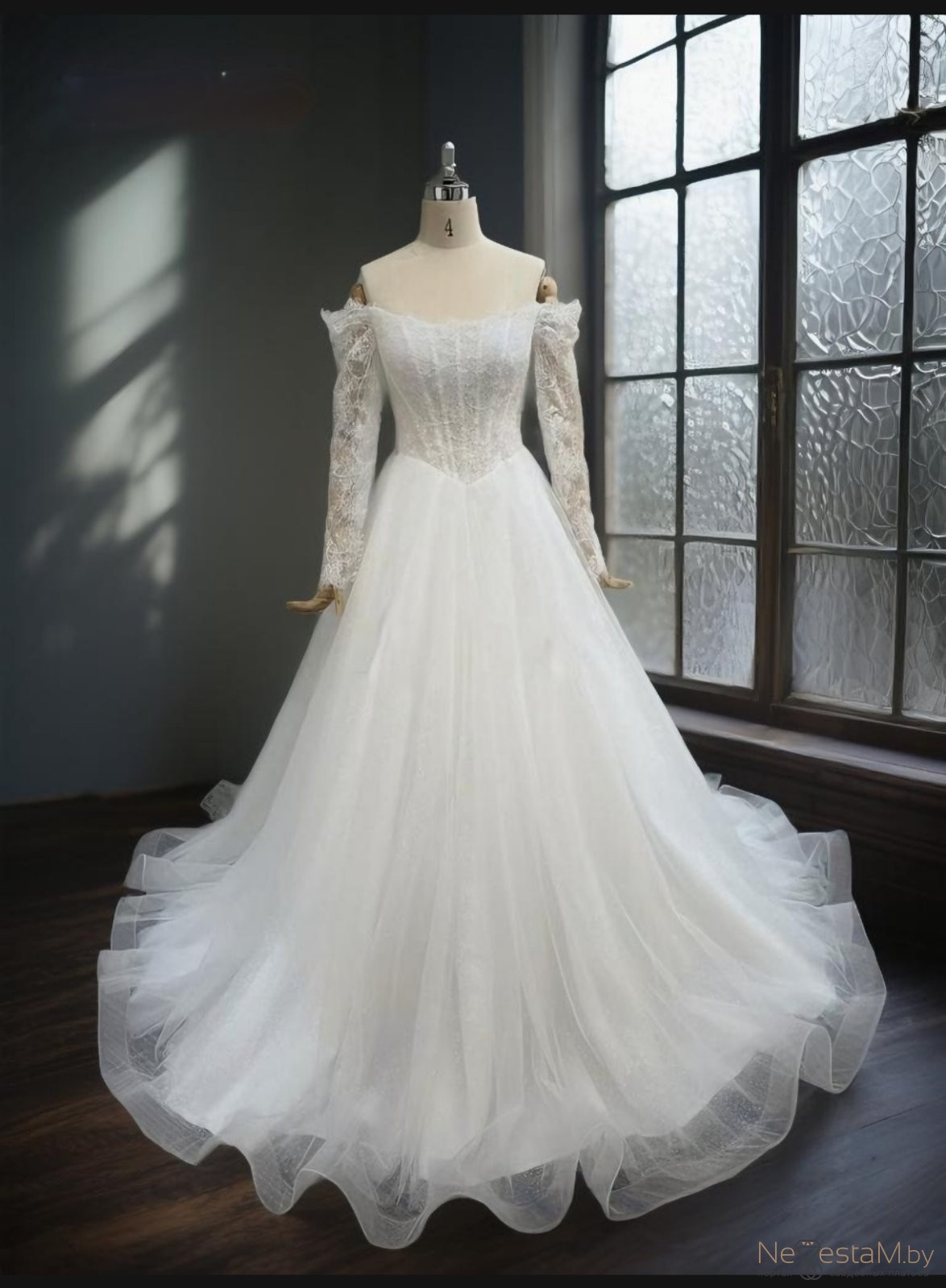 Кружевной корсет с нежной фатиновой юбкой со шлейфом.