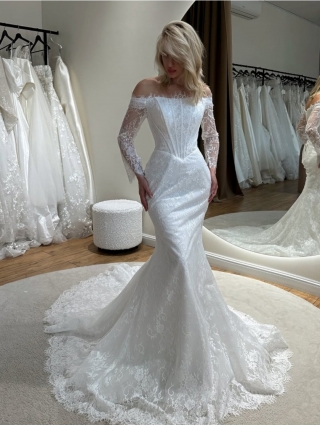 Продажа нарядов для бракосочетания в стиле Рыбка позволит подчеркнуть фигуру и индивидуальность. Благодаря многочисленным вариантам дизайна можно выбрать идеальное платье с различными элементами:
