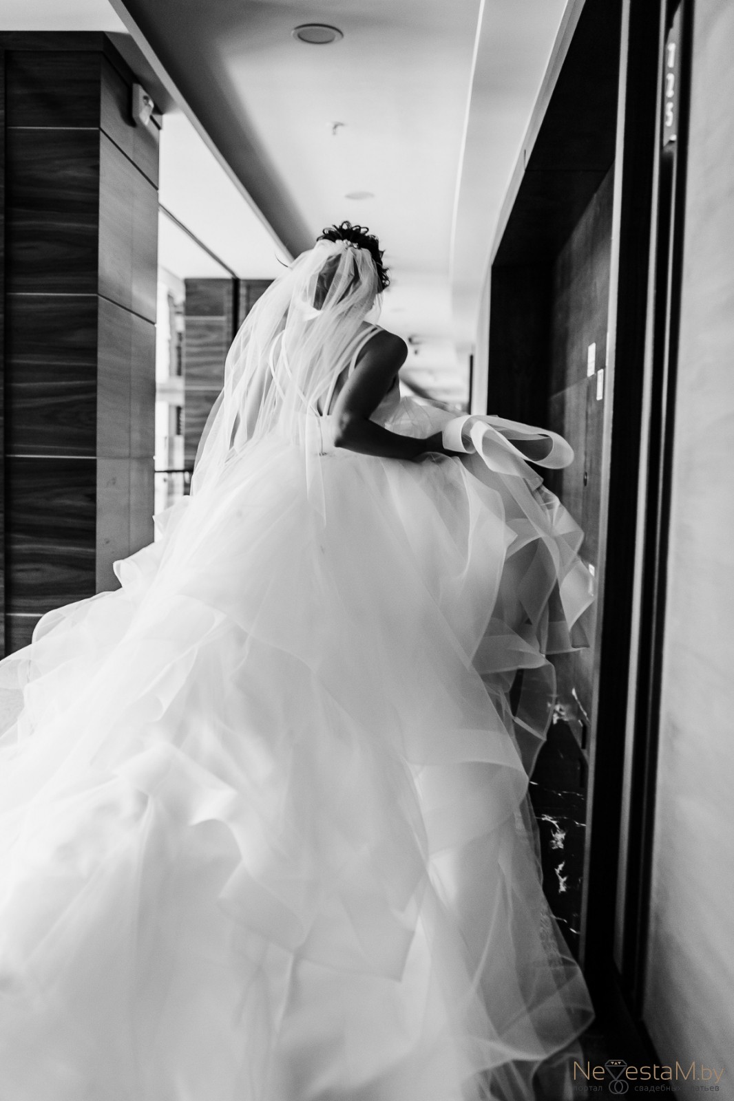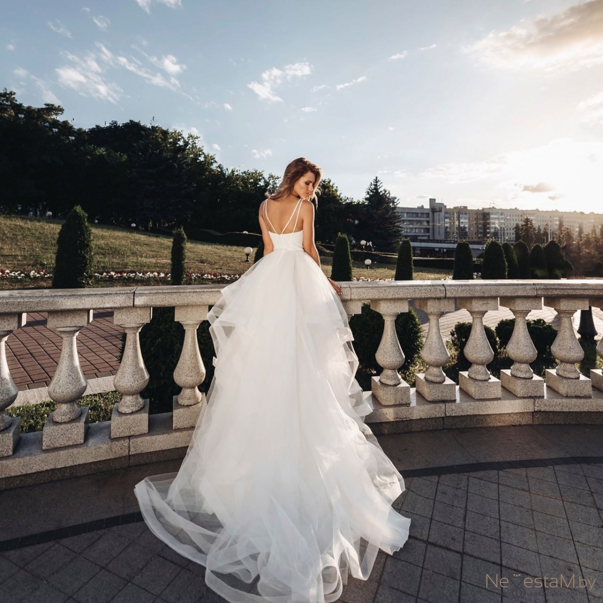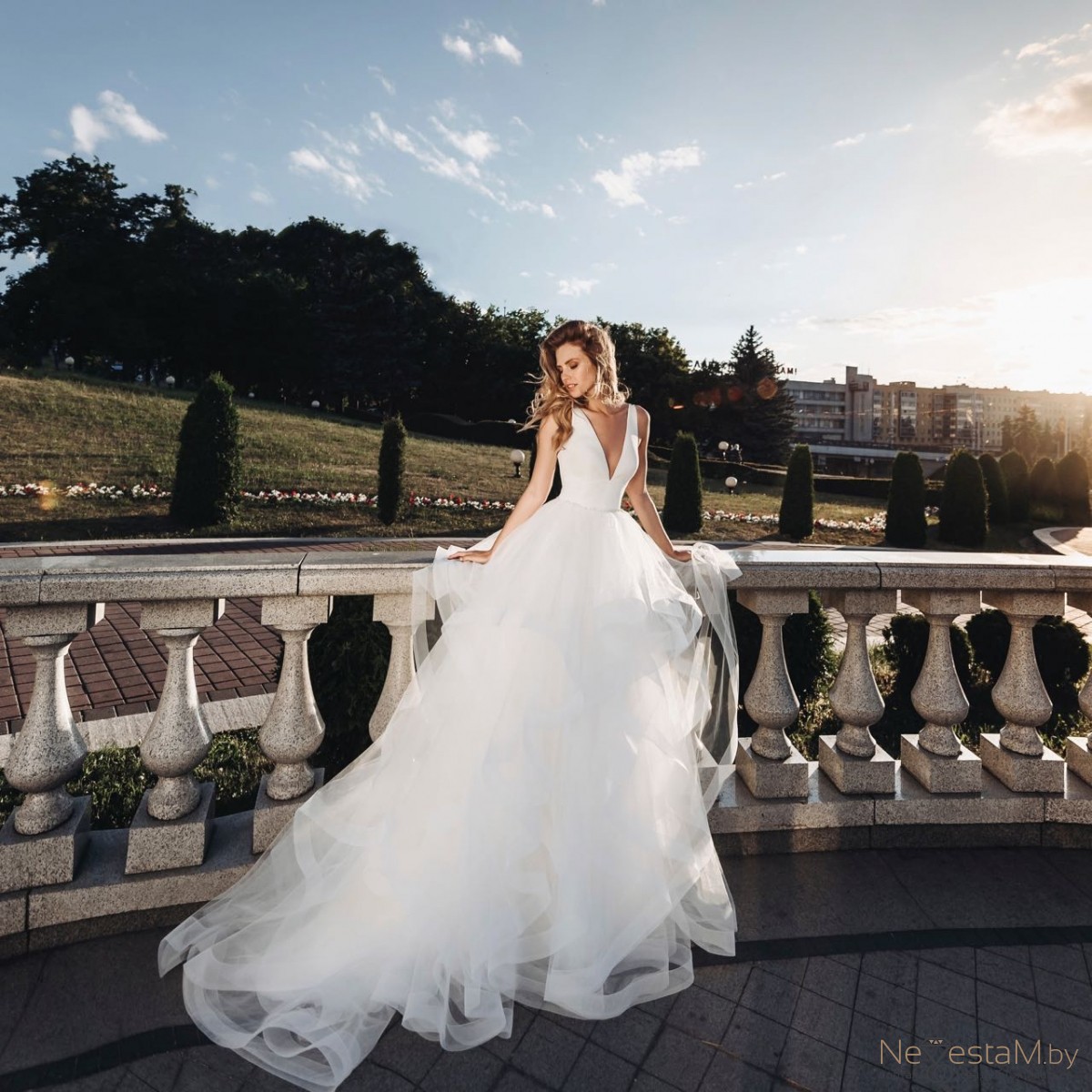 В наличии. Цвет - айвори. Размеры 42-44-46. Цена ориентировочная. Она зависит от даты бронирования, скидок и акций в определённый период в салоне. Точную стоимость уточняйте при примерке у консультанта, либо у администратора по телефону.