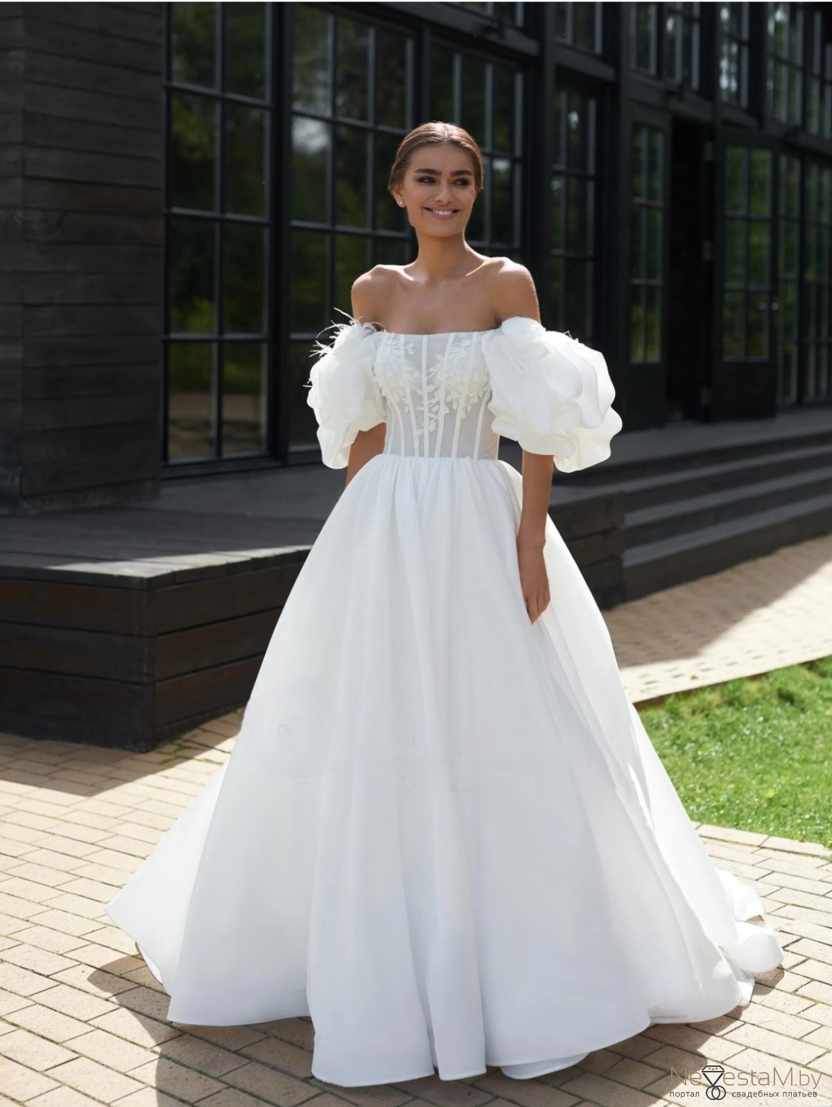 Стильное пышное свадебное платье со шлейфом. 42/48