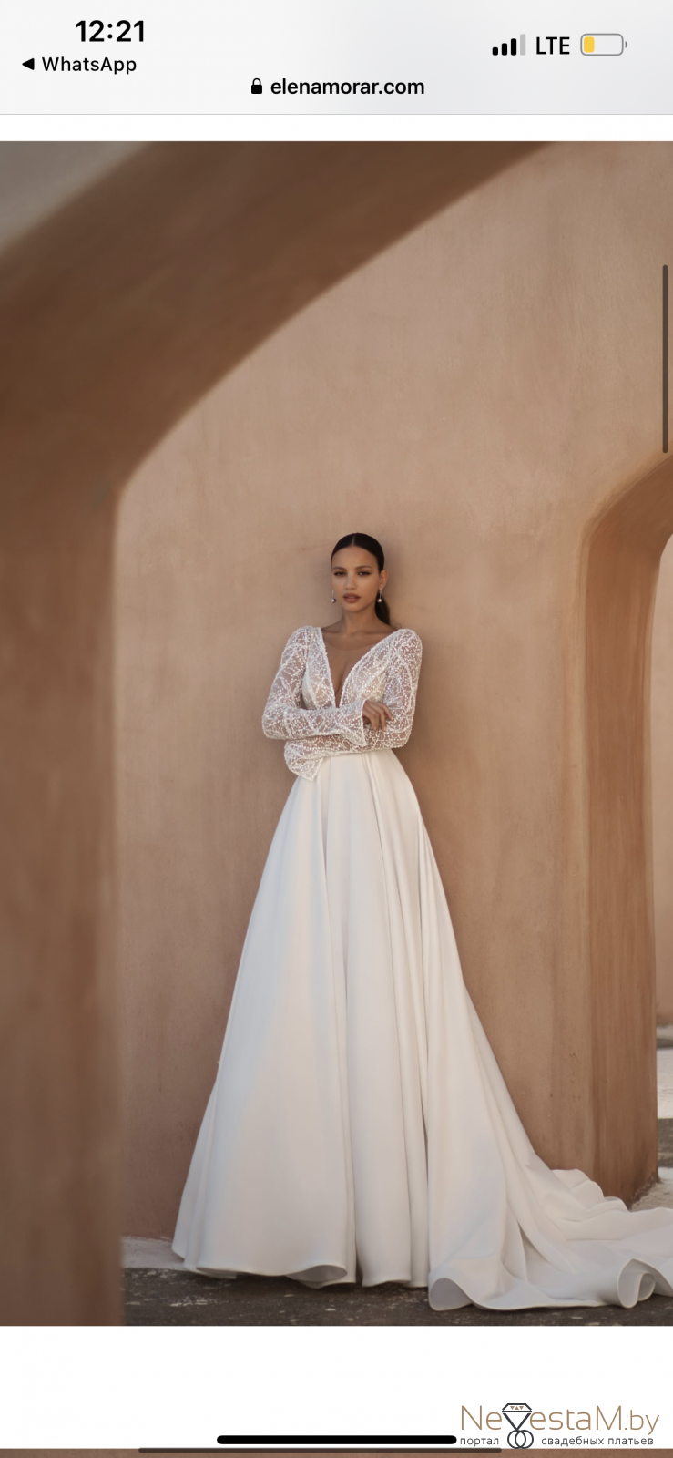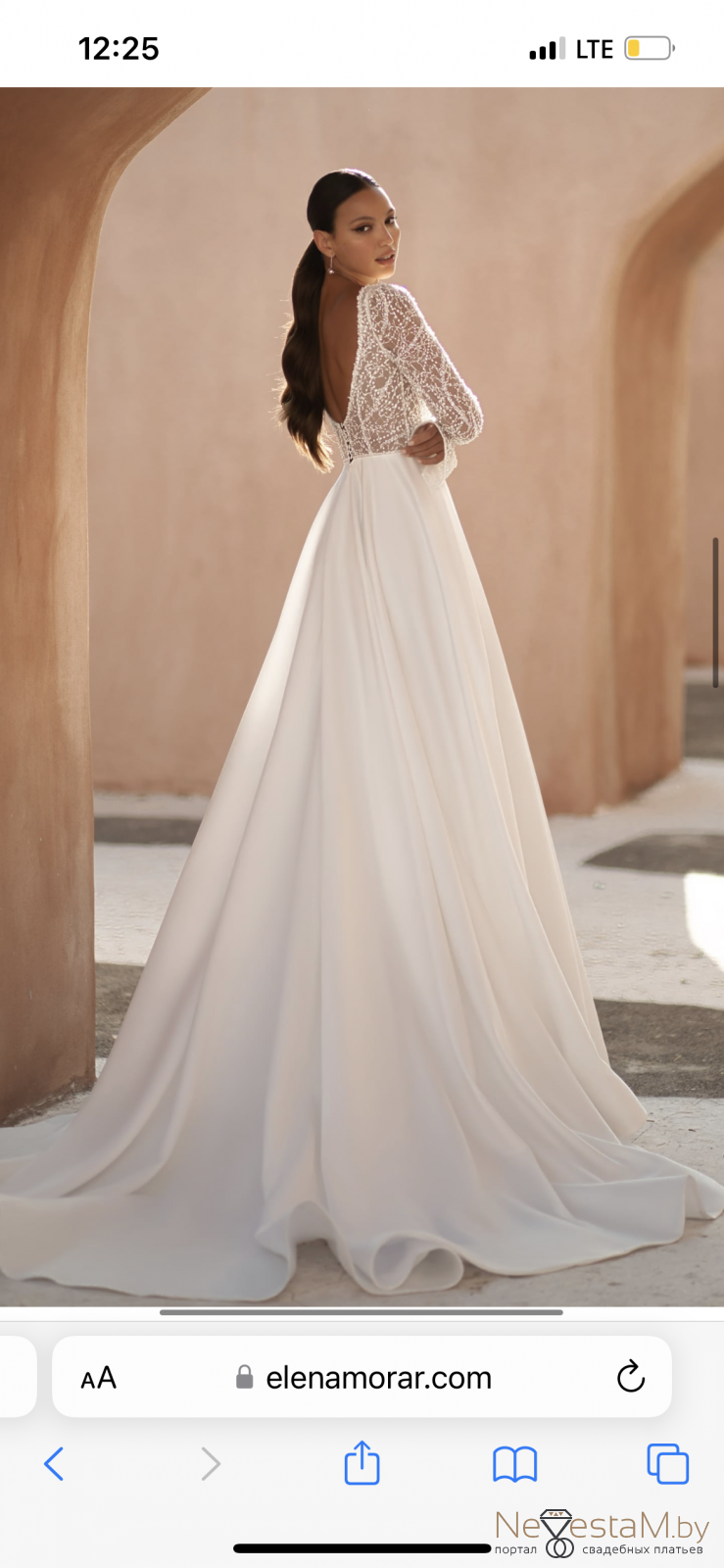 Размеры 44-46. Цвет - айвори. Цена ориентировочная. Она зависит от даты бронирования, скидок и акций в определённый период в салоне. Точную стоимость уточняйте при примерке у консультанта, либо у администратора по телефону.
