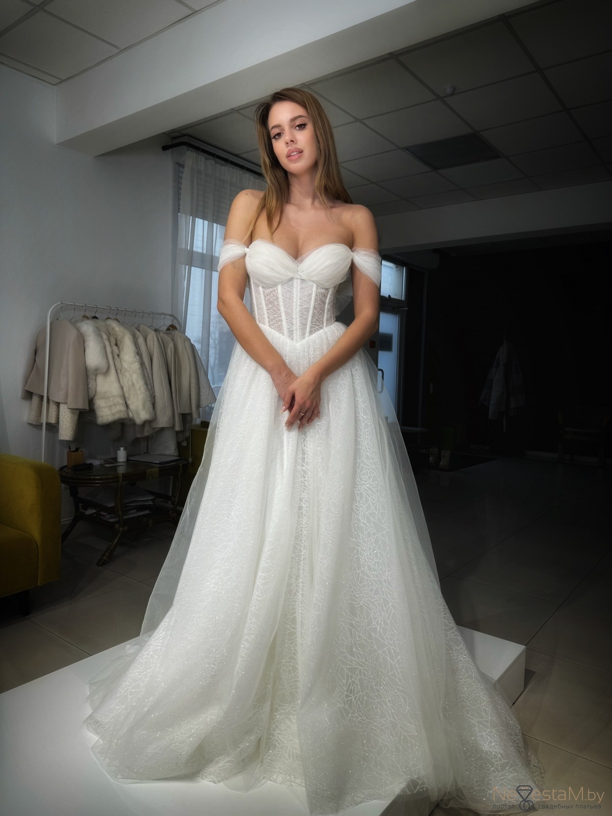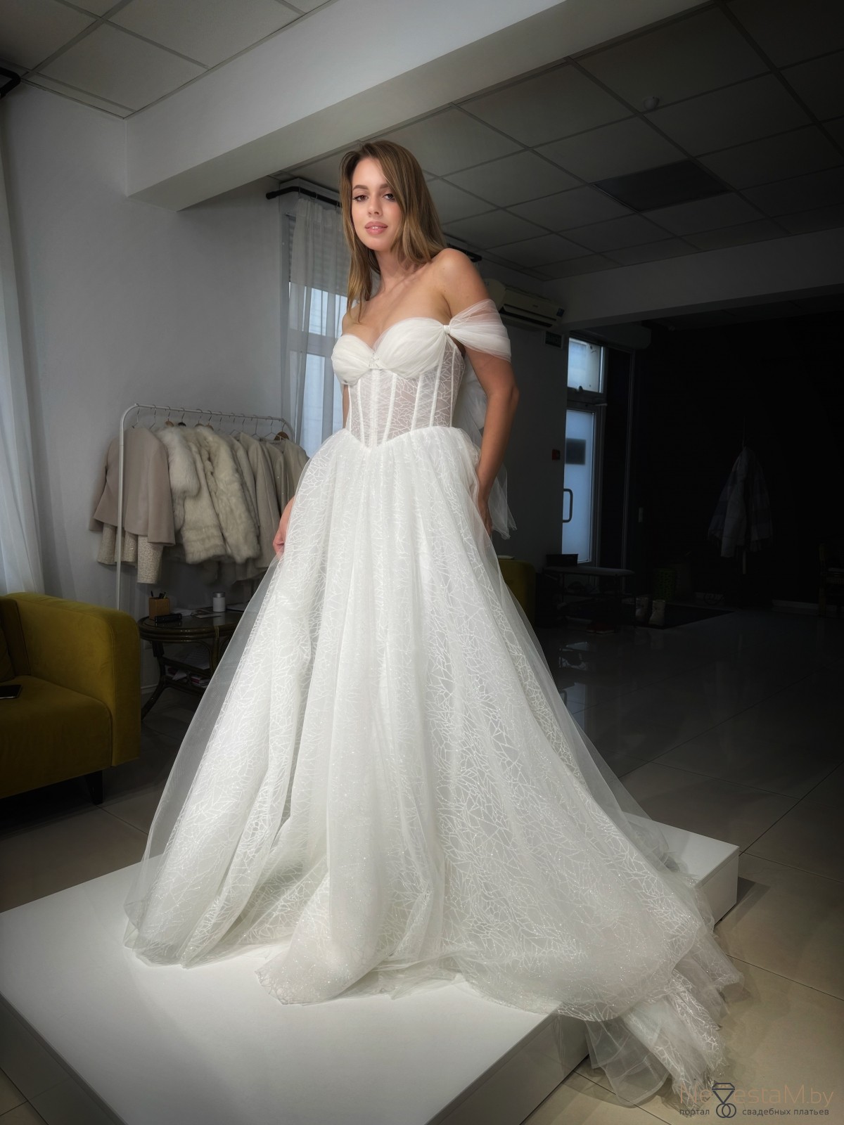 Размер: 42-44-46 Цвет: айвори Есть в наличии. Цена ориентировочная. Она зависит от даты бронирования, скидок и акций в определённый период в салоне. Точную стоимость уточняйте при примерке у консультанта.