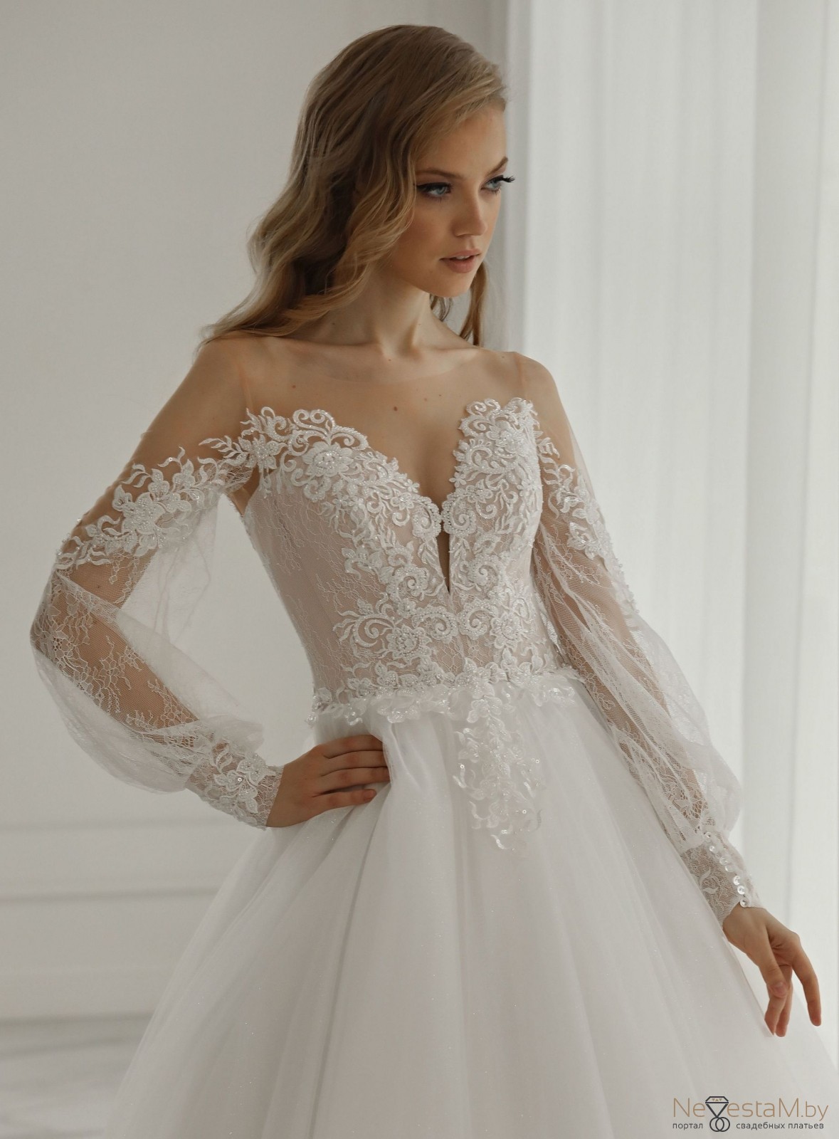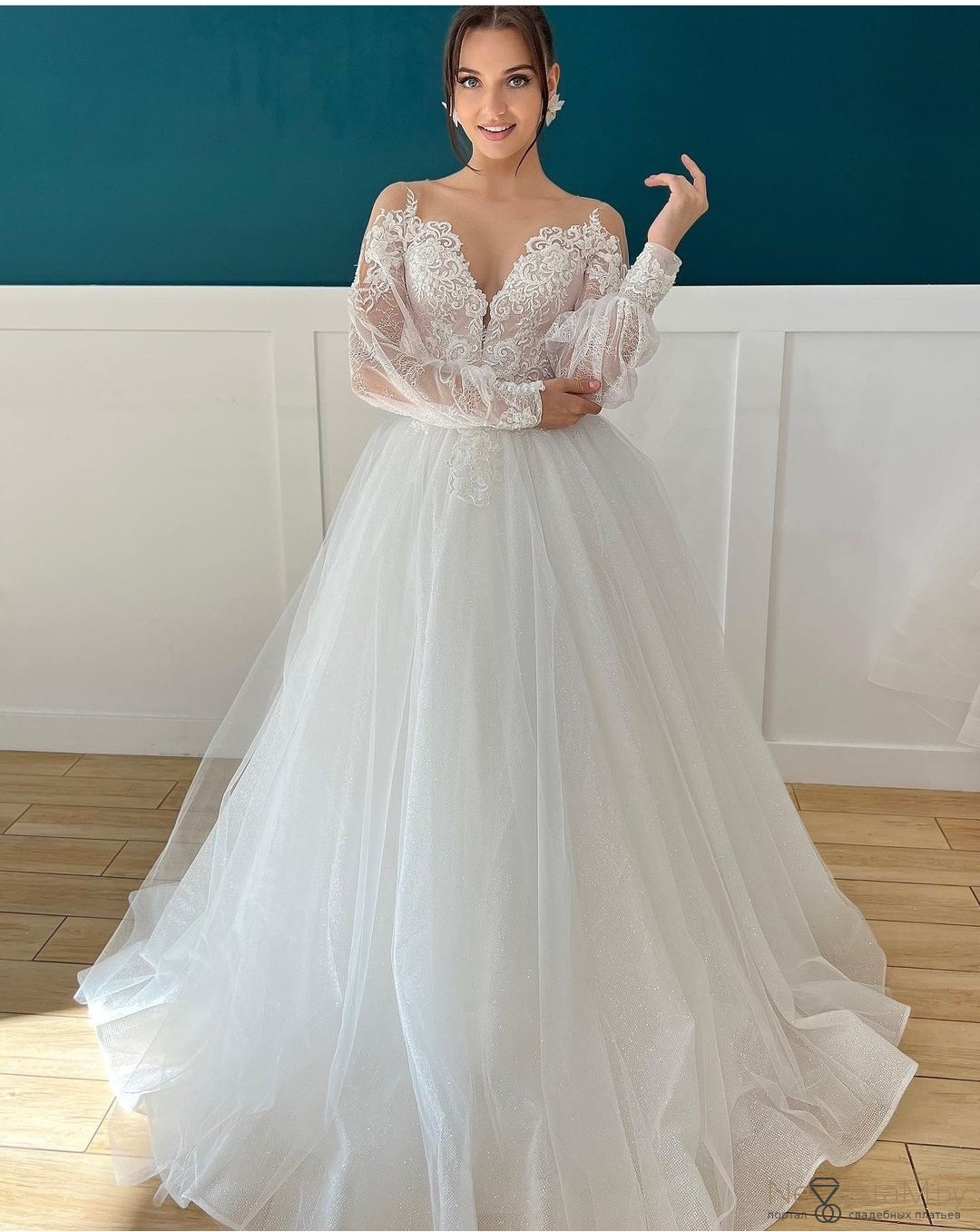 Эффектное платье в современном стиле. Воздушные рукава и юбка с мерцающим эффектом сделают твой образ изумительным.
