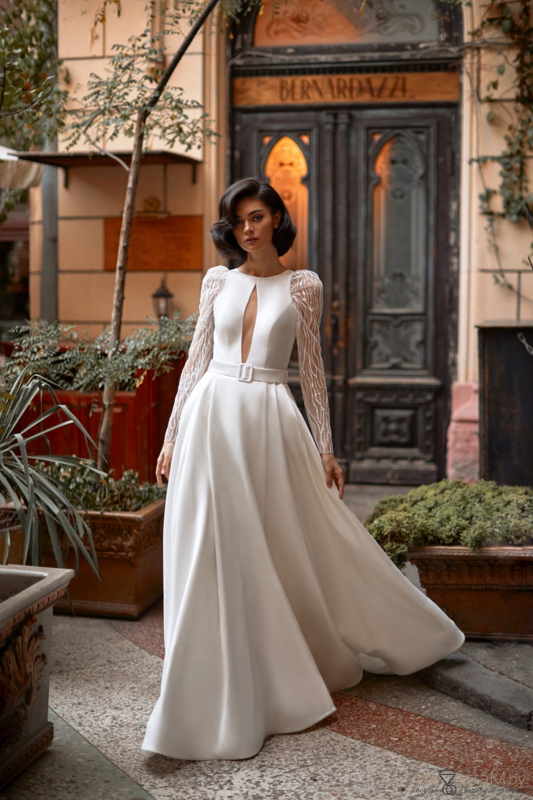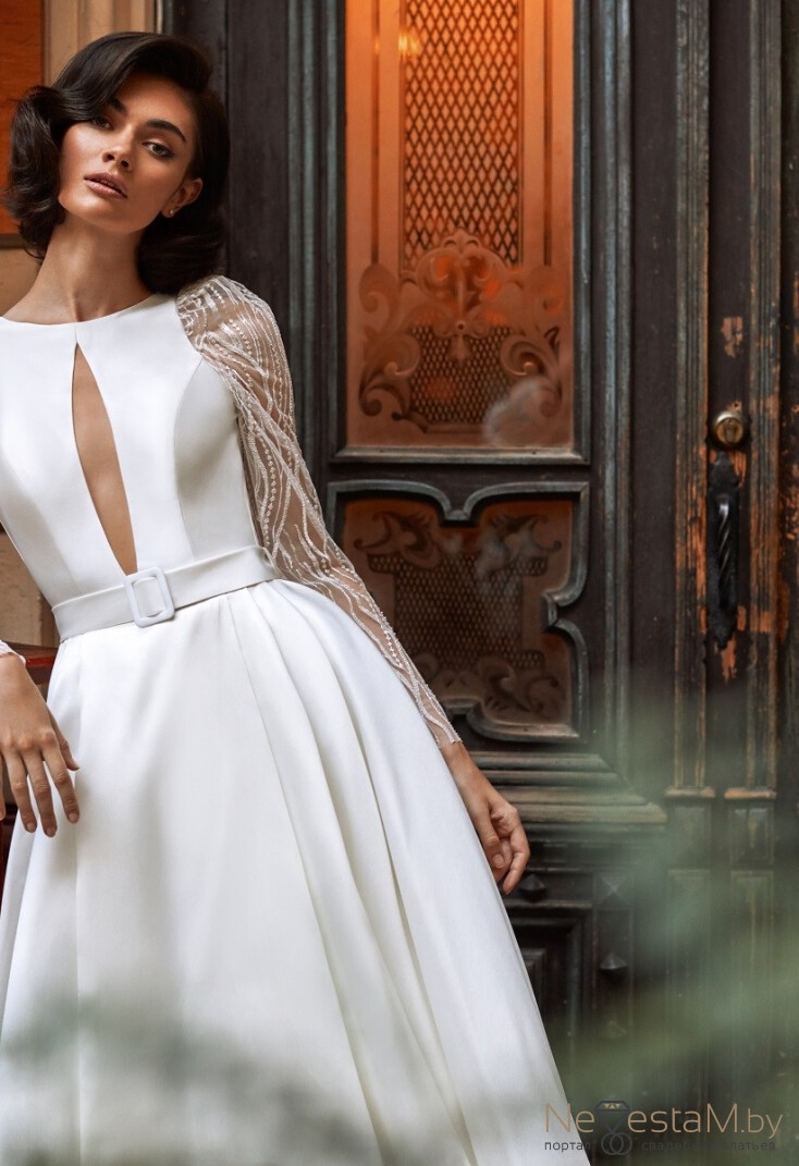 Размер: 42-44-46 Цена ориентировочная. Она зависит от даты бронирования, скидок и акций в определённый период в салоне. Точную стоимость уточняйте при примерке у консультанта.