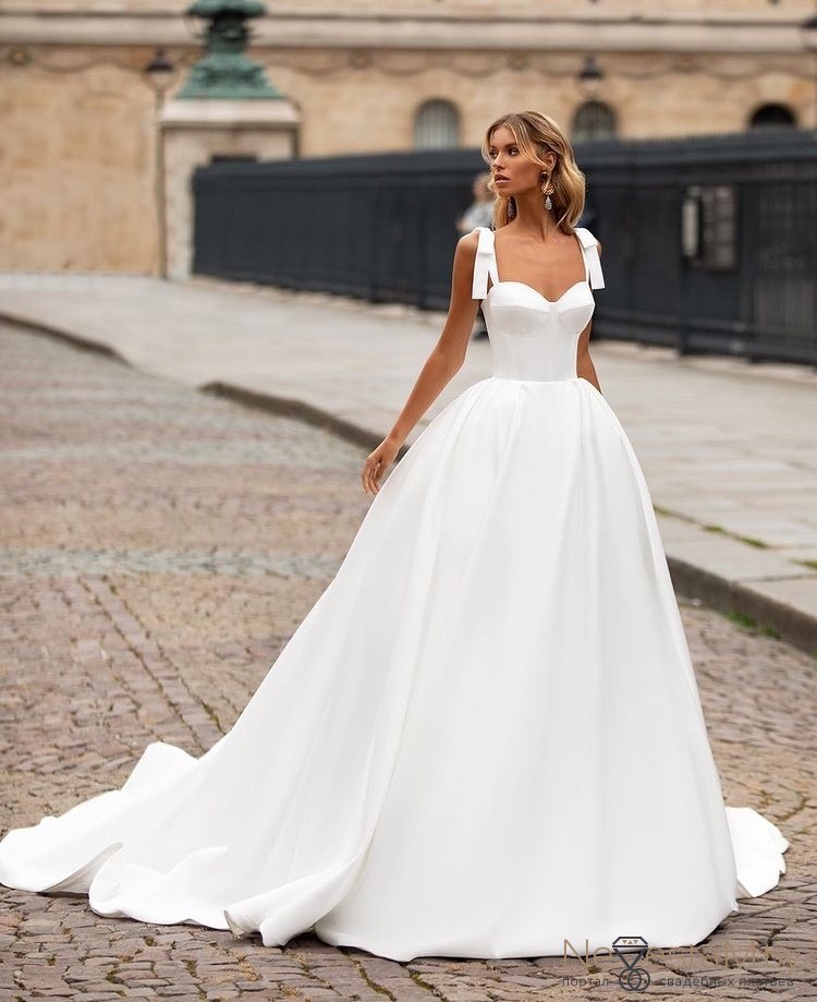 Размер: 42-44-46 Цена ориентировочная. Она зависит от даты бронирования, скидок и акций в определённый период в салоне. Точную стоимость уточняйте при примерке у консультанта.