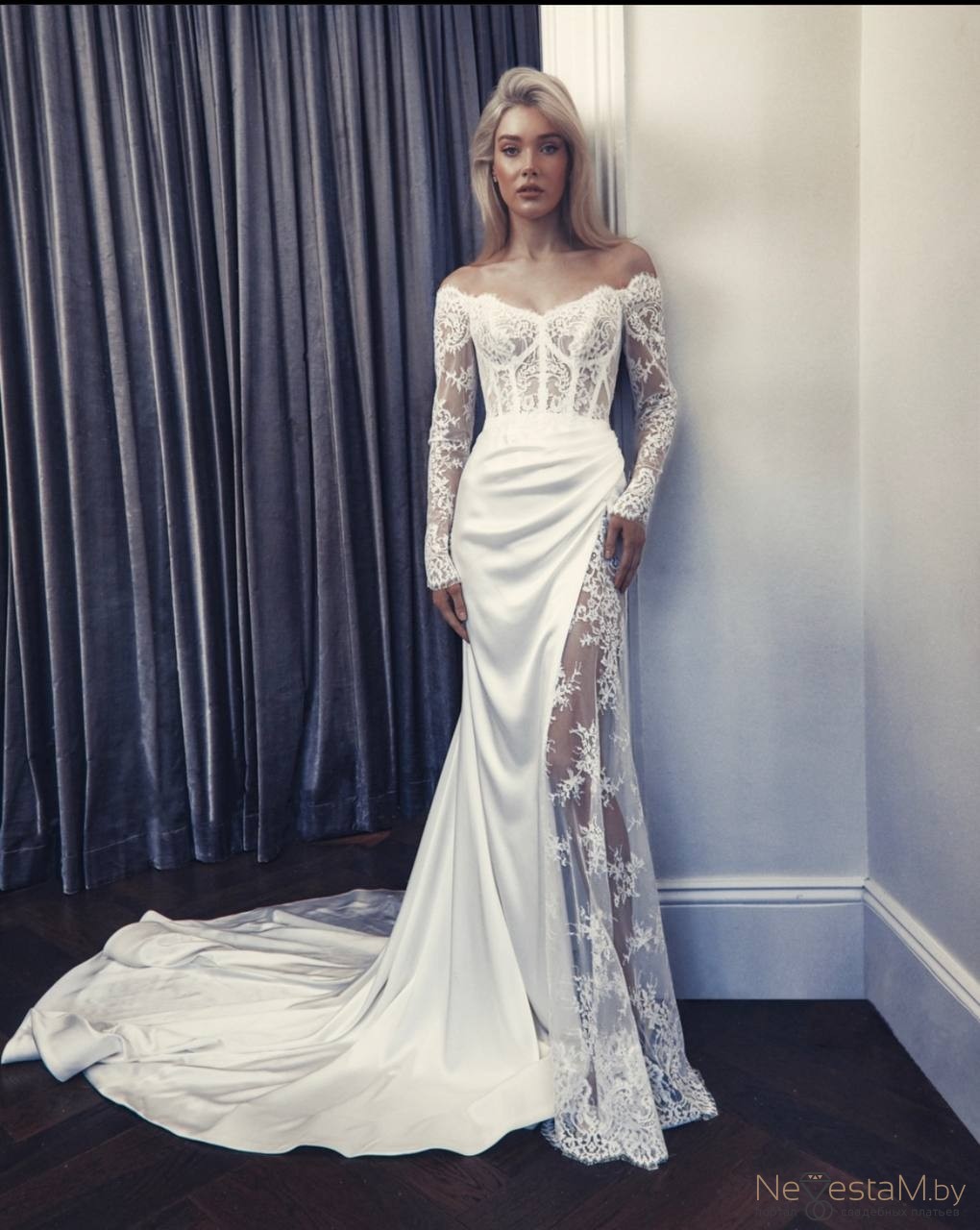 Есть в наличии. Размер: 42-44-46 Цена ориентировочная. Она зависит от даты бронирования, скидок и акций в определённый период в салоне. Точную стоимость уточняйте при примерке у консультанта.