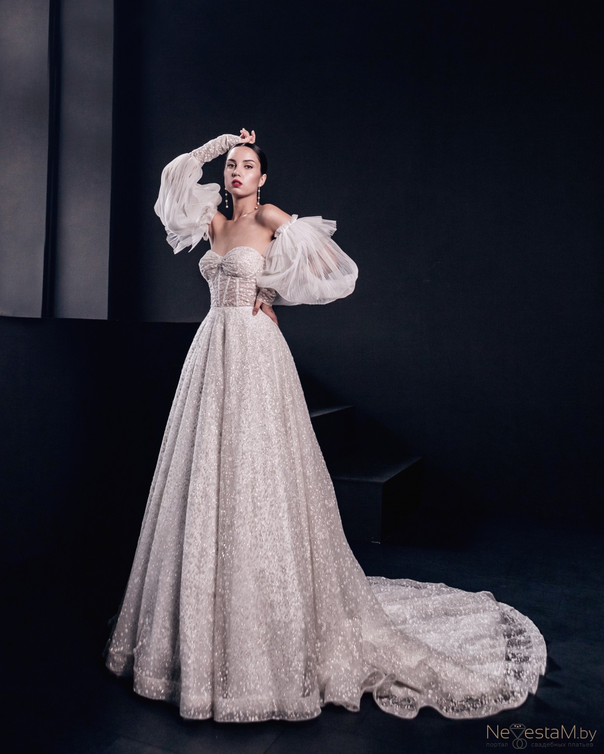 Шикарное и неповторимое платье новейшей коллекции! Светящийся рисунок, съемные рукава, длинный шлейф. Размер: 42-44, 44-46. Цвет: айвори Стоимость ориентировочная. Точную стоимость уточняйте в салоне на примерке Акция до 31.10. Цена проката=цене покупки