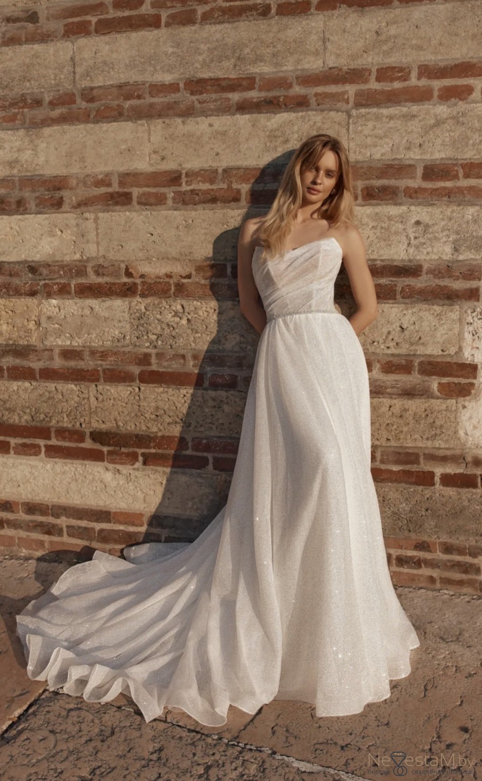 В наличии. Цвет - айвори. Размеры 42-44-46. Цена ориентировочная. Она зависит от даты бронирования, скидок и акций в определённый период в салоне. Точную стоимость уточняйте при примерке у консультанта