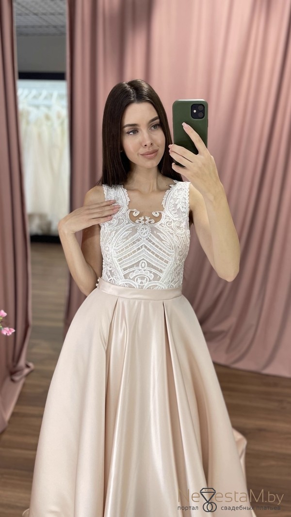 Атласное свадебное платье со шлейфом. 42/44 размер
