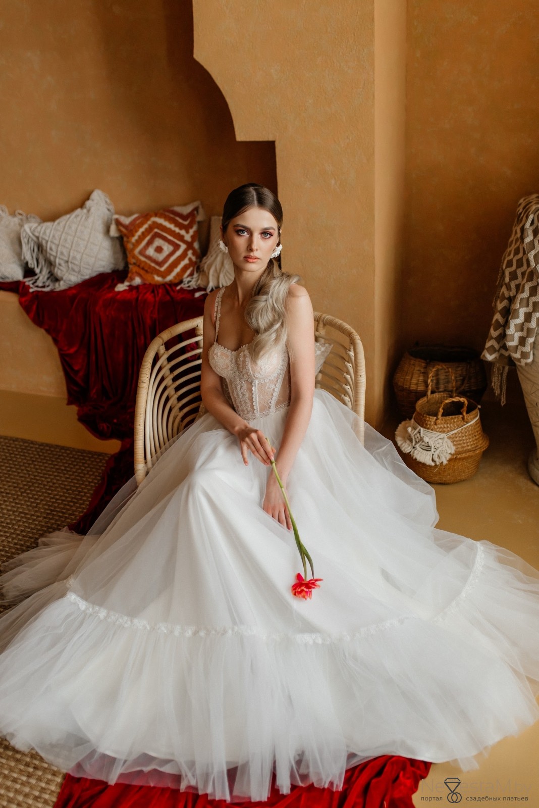 Размер: 42-44-46 Цена ориентировочная. Она зависит от даты бронирования, скидок и акций в определённый период в салоне. Точную стоимость уточняйте при примерке у консультанта.