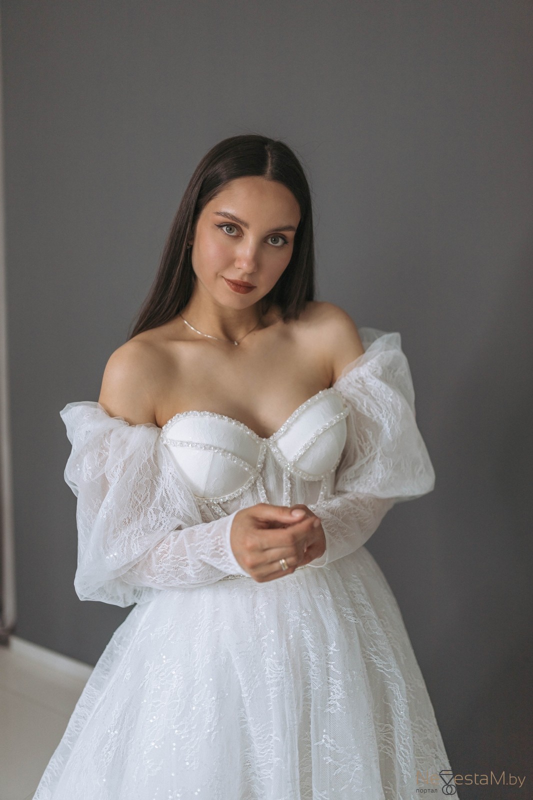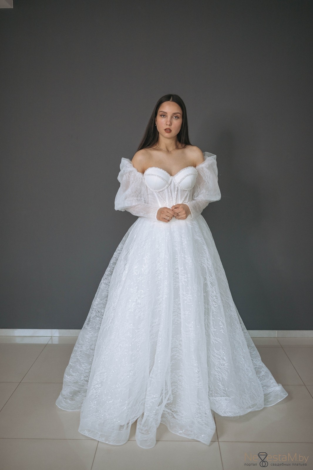 Платье-трансформер. Со съемными рукавами. Р42-46. Айвори. Цена ориентировочная. Она зависит от даты бронирования, скидок и акций в определённый период в салоне. Точную стоимость уточняйте при примерке у консультанта