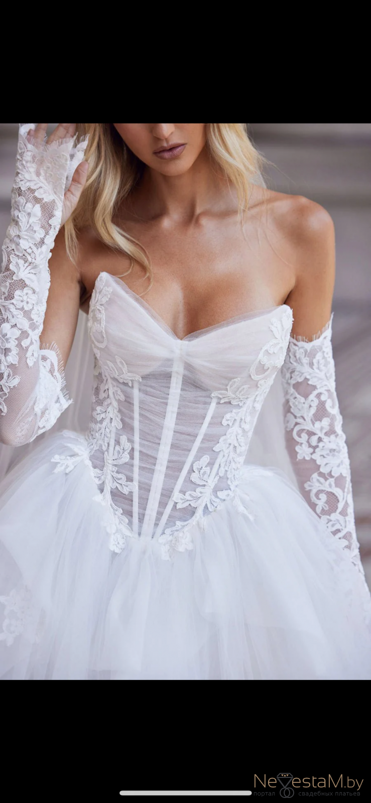 Свадебное корсетное платье с мерцающей юбкой. Съёмные рукава или спущенные плечики. Размер - 42-44-46. _________________________ Больше моделей в нашем профиле в инстаграм.