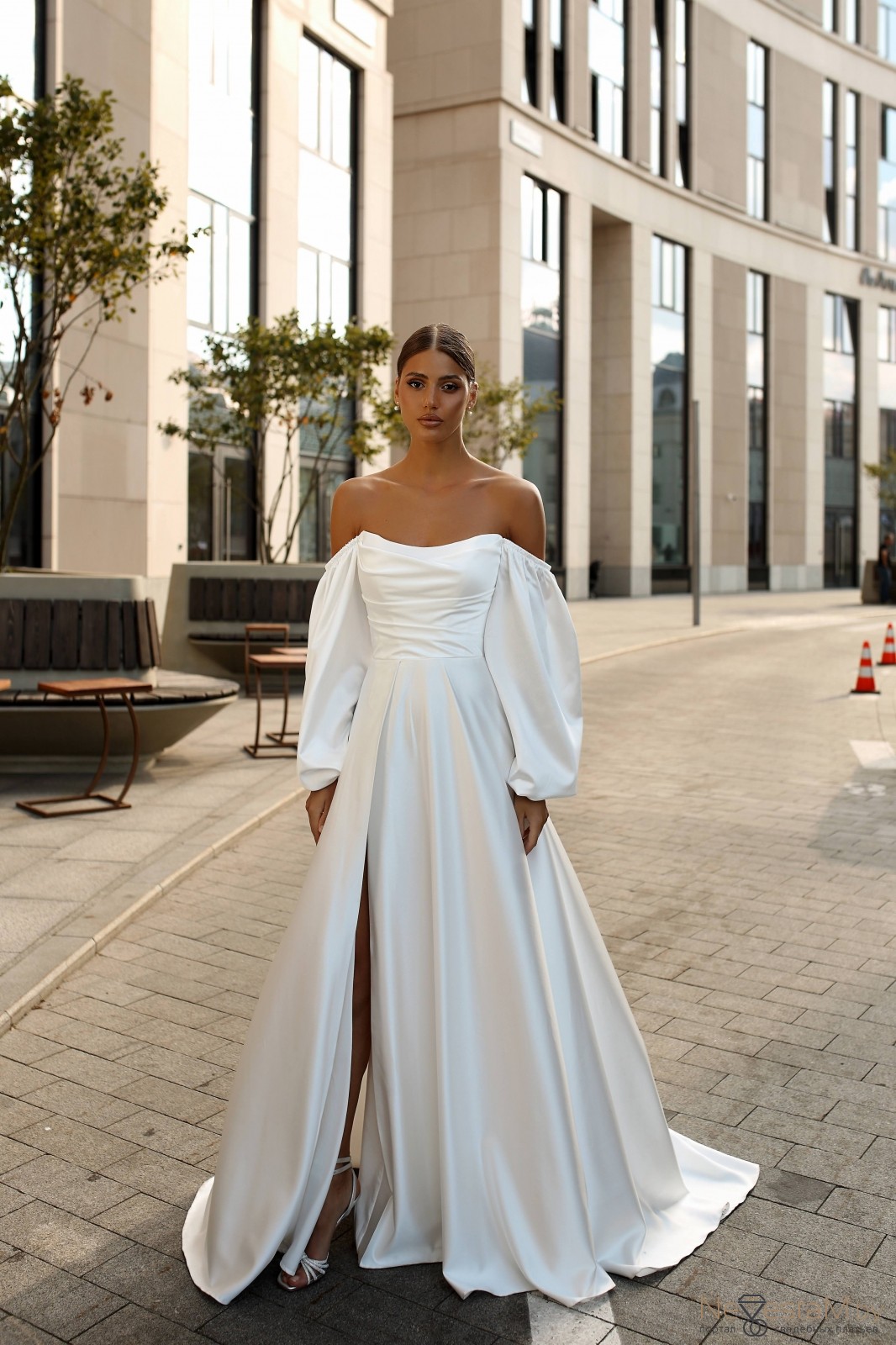Свадебное платье с очаровательными рукавами и вырезом луна. Нежная непышная юбка с разрезом. Размер - 42-44-46. _________________________ Больше моделей в нашем профиле в инстаграм.
