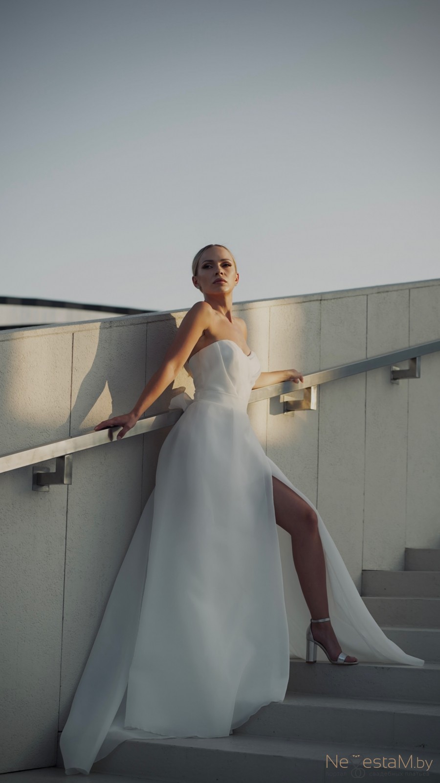 Скидка на покупку 50%. Воздушное свадебное платье из благородной органзы. Съемные рукава буфы или спущенные плечики отдельно. Размер - 42-44-46. _________________________ Больше моделей в нашем профиле в инстаграм.