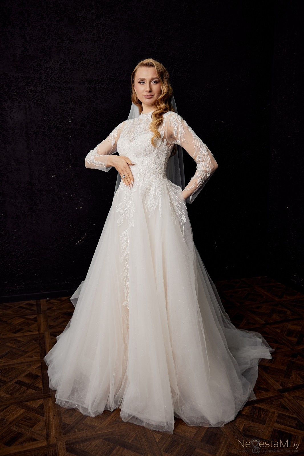 Закрытое пышное свадебное платье в легком оттенке пудры. Внутренний корсет с изумительным расшитым кружевом верхом. Пышная юбка и октрытая спинка. Размер - 44-46. _________________________ Больше моделей в нашем профиле в инстаграм.