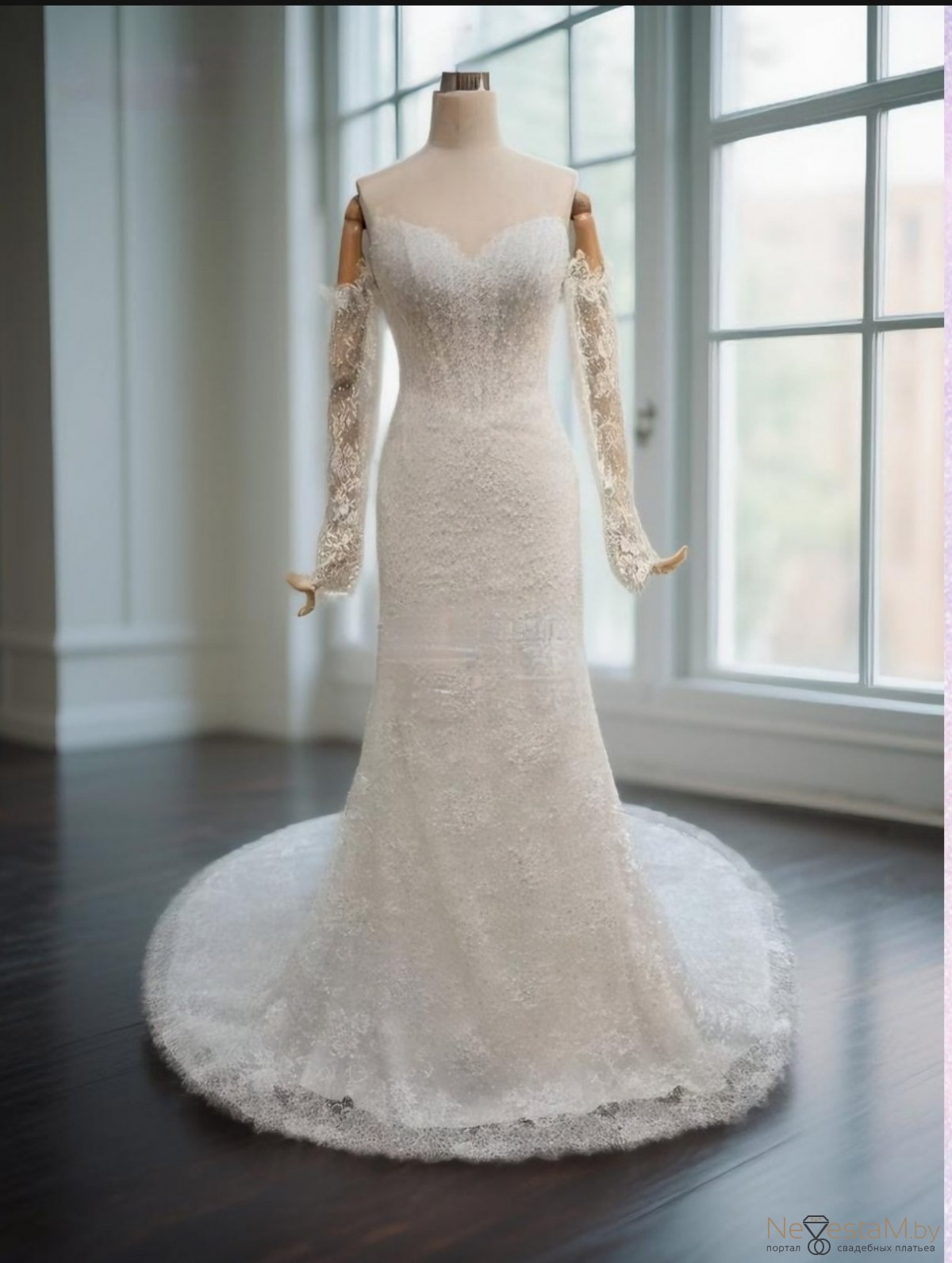Изумительно роскошное кружево. Силуэтное платье со шлейфом.