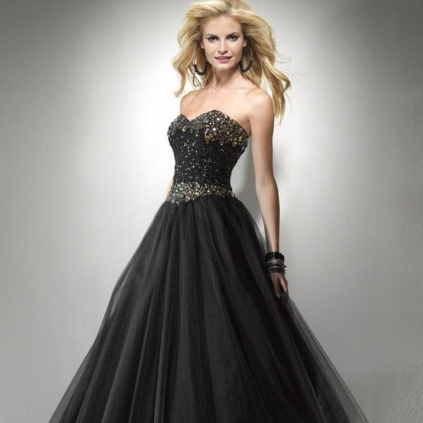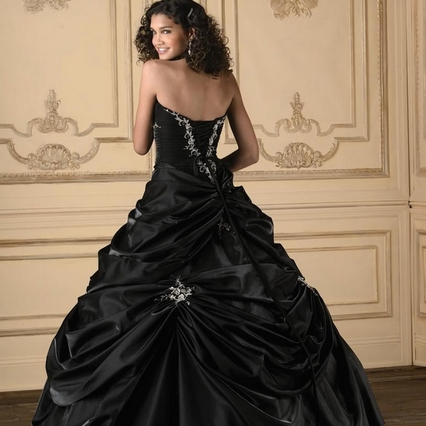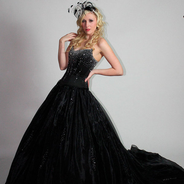 С черным свадебным платьем удачно гармонируют украшения с бриллиантами, жемчугом или кристаллами. Свой образ можно дополнить элегантным колье, выразительными сережками, яркой брошью, красивой диадемой или фатой, расшитой стразами или камнями.