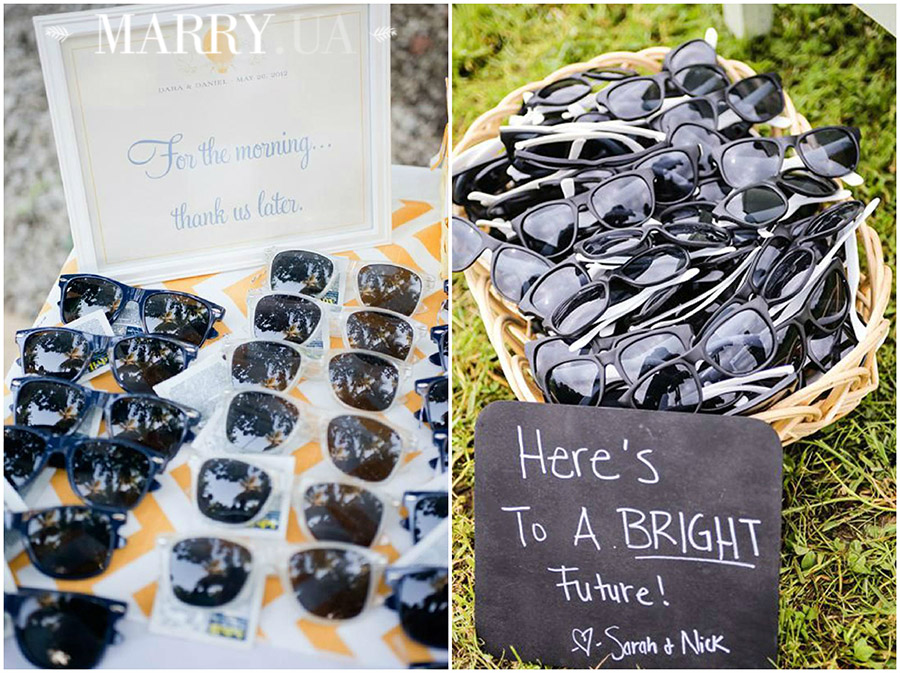 Скажете, слишком расточительно? Вполне нормально — ответит вам каждый, кто хоть раз побывал на летней свадьбы без очков. Альтернативой им могут быть широкие зонтики, шляпы, импровизированные навесы – все, что только дает тень!