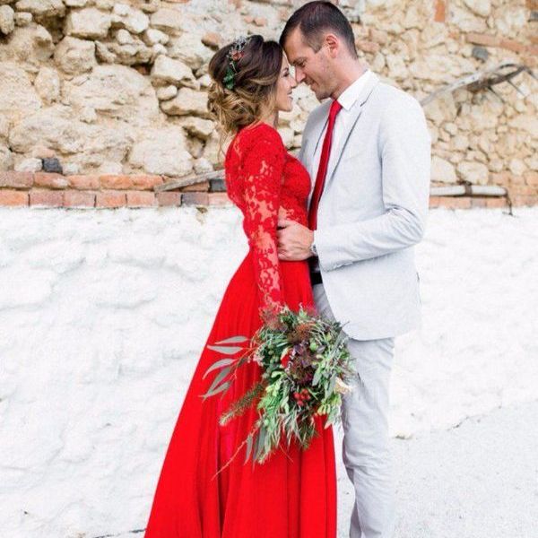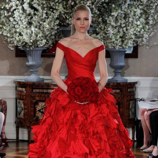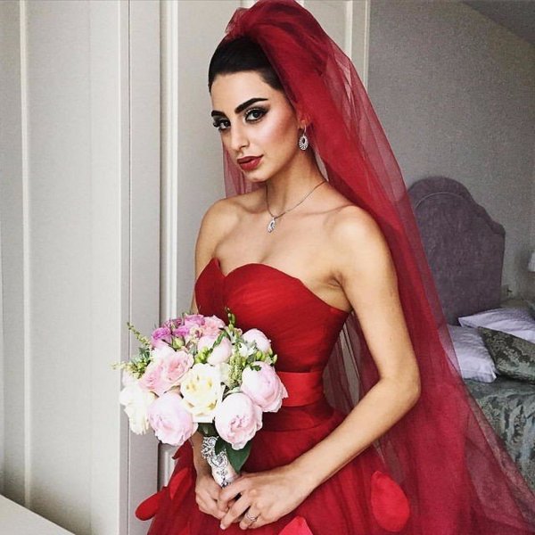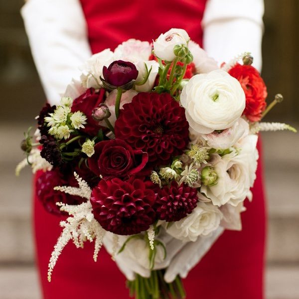 Раз невеста решила надеть свадебное платье красного цвета, ей еще предстоит подобрать к нему букет. Нужно подумать, цветочная композиция какого оттенка будет лучше гармонировать с нарядом.