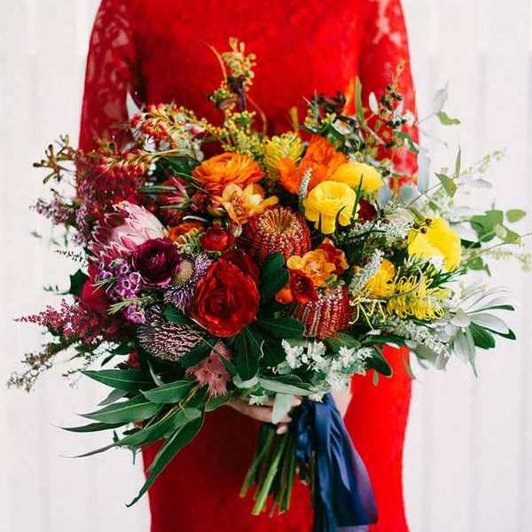 Какой букет выбрать невесте под красное свадебное платье