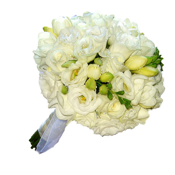 Стилисты не рекомендуют выбирать букеты в тон свадебного платья. Поскольку так цветочная композиция не будет выделяться на общем фоне. Если нужно привлечь внимание к платью, контрастных оттенков тоже стоит избегать. Чтобы букет выделялся на общем фоне, но не был основной деталью образа, выберите композицию, украшенную зелеными листьями.