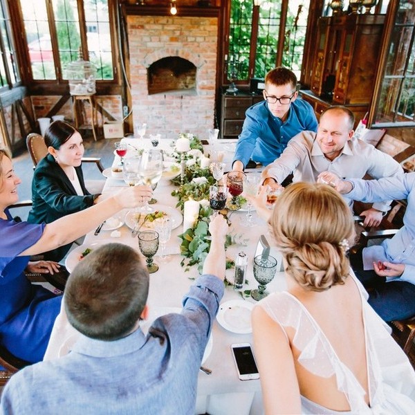 На камерную свадьбу приглашают только близких людей, с которыми приятно проводить время. Вечер пройдет в спокойной теплой атмосфере и будет напоминать встречу лучших друзей.