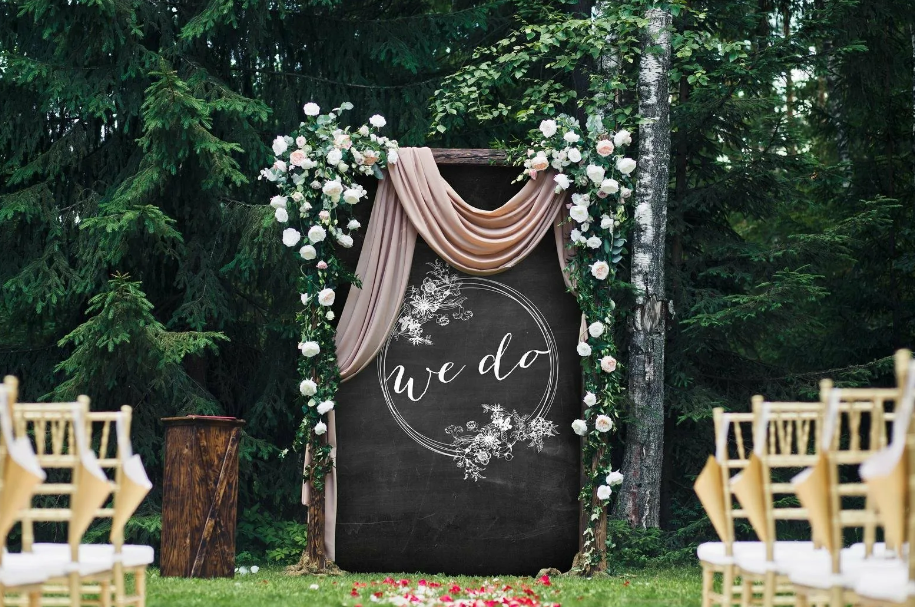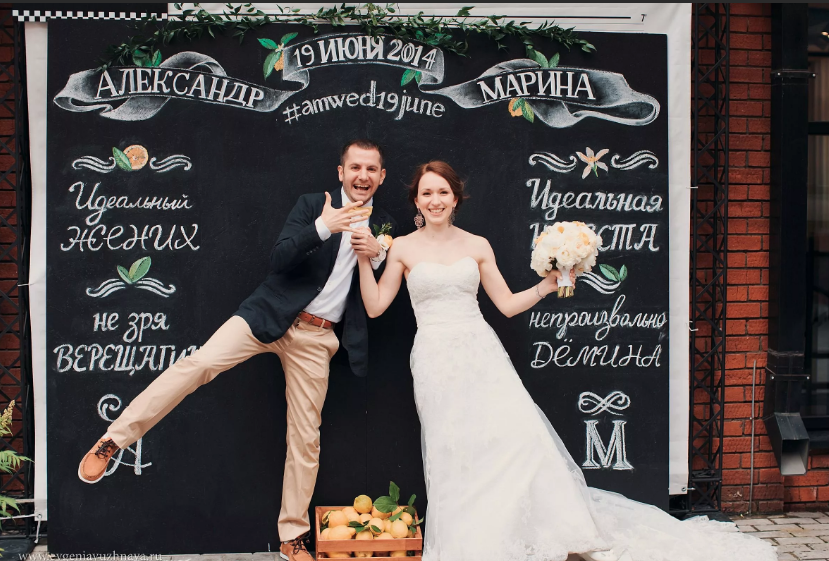 - Фон из грифельной доски, на котором можно написать пожелания молодоженам;