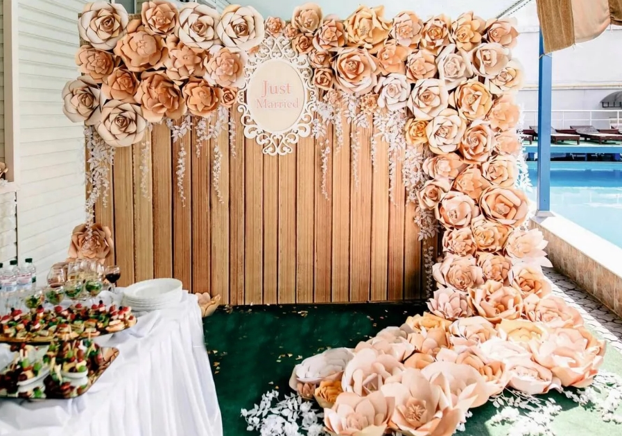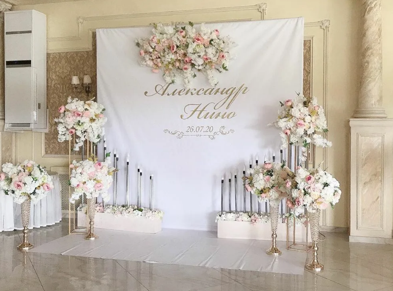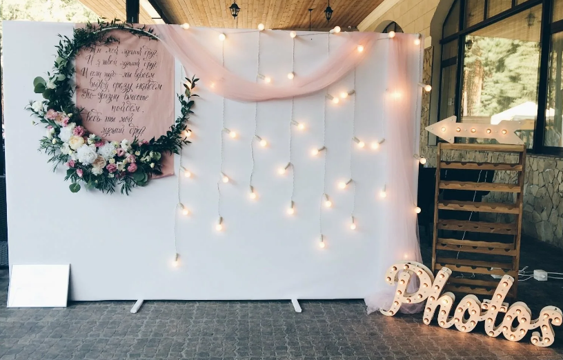 - Хорошее освещение фотозоны для свадьбы - залог качественных фотографий. Можно установить осветительное оборудование или просто выбрать самый освещенный участок зала;