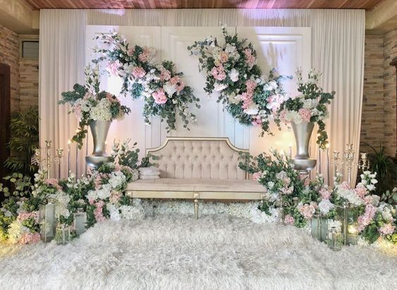 - Весеннее торжество подразумевает использование нежных оттенков, тканевых драпировок, живых цветов.