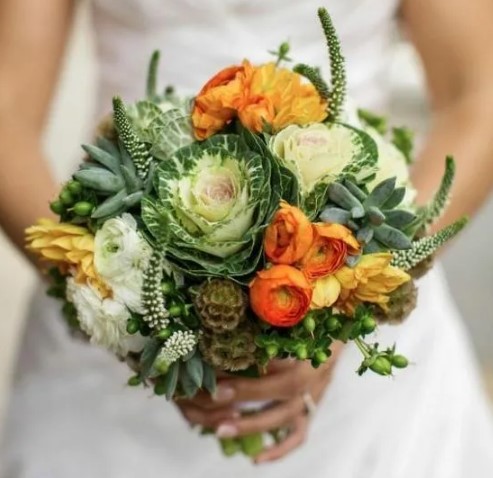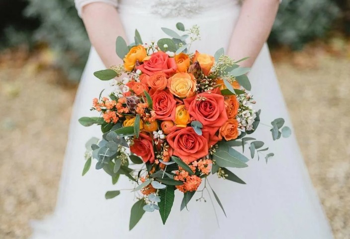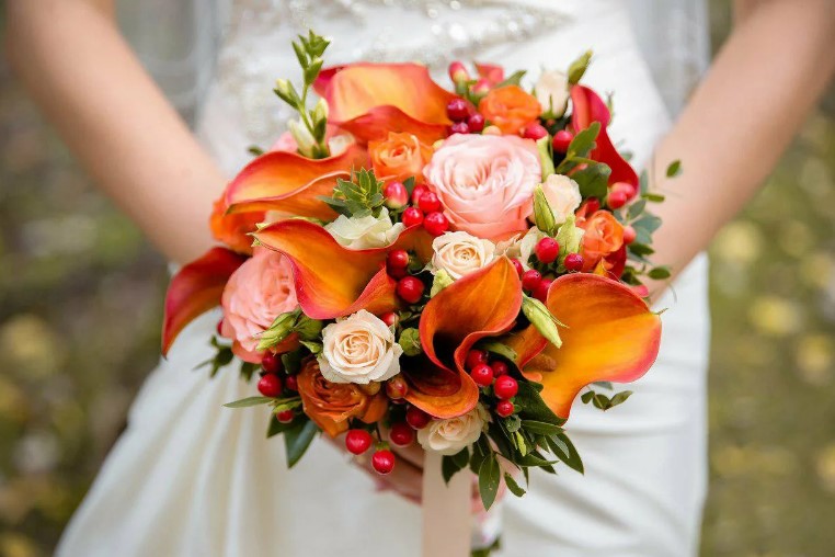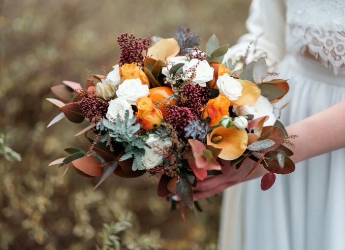 Среди популярных сезонных цветов для осеннего букета невесты можно выделить: