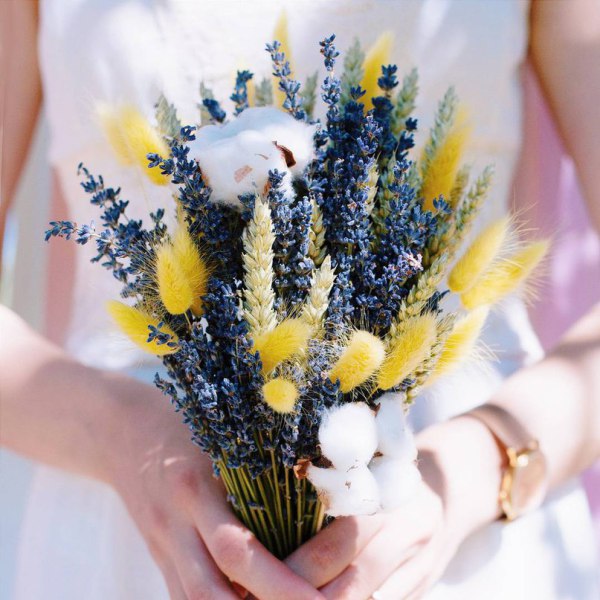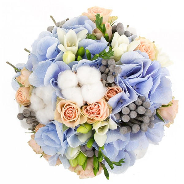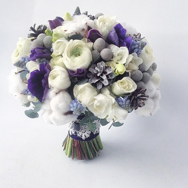 Никто не ограничивает вашу фантазию, главное, чтобы букетик смотрелся изыскано и мило. Можно попросить флориста создать букет из хлопка и суккулентов, это будет очень уместно на торжества в стиле винтаж, шебби-шик или рустик.