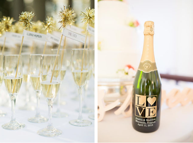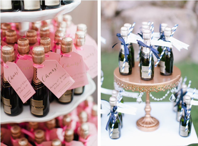 Пойдя еще дальше, пары могут сделать бутылки с шампанским центральным элементом декора на каждом столике.