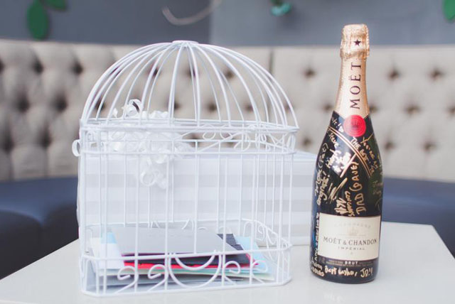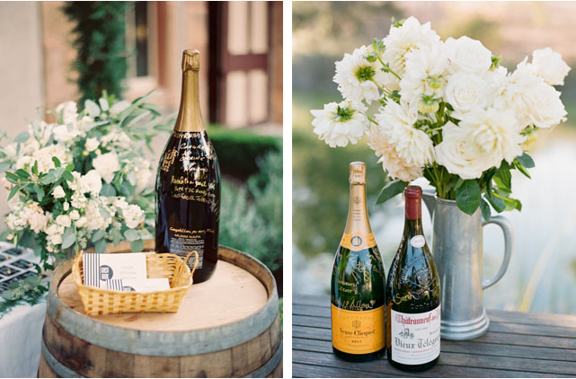 Нередко пары используют на свадьбах гостевую книгу – чтобы гости могла оставлять в ней теплые пожелания. Почему бы не обновить традицию, использовав вместо стандартной книги большую бутылку шампанского? Идея однозначно интересная для тех, кто не собирается откупоривать шипучку в день свадьбы. Представьте, как здорово будет еще раз перечитать все оставленные гостями приятные надписи спустя время. Например, открыв шампанское на первую годовщину или в день рождения первенца.