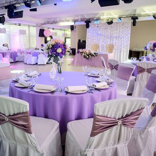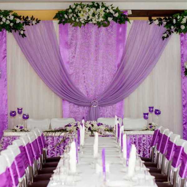 Лиловый – цвет романтики и нежности. Он подходит как для свадебных нарядов, так и для оформления залов. Такой цвет больше всего идет девушкам со смуглой кожей и не перегружает обстановку.