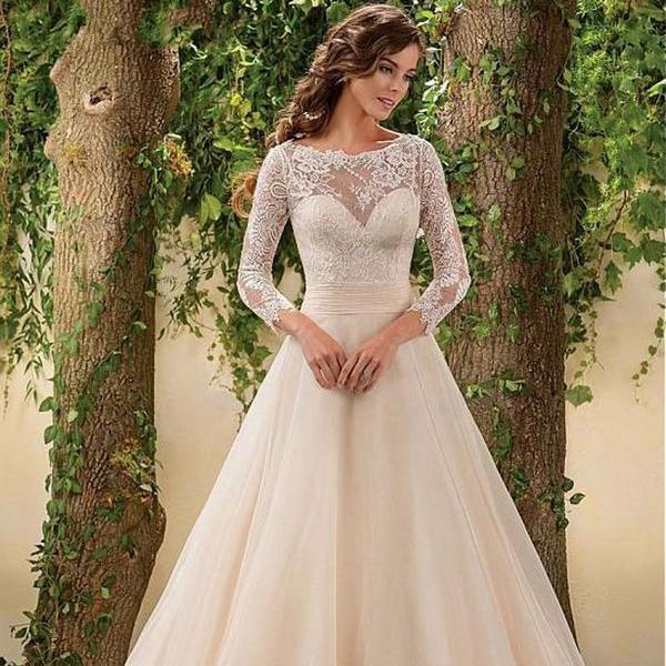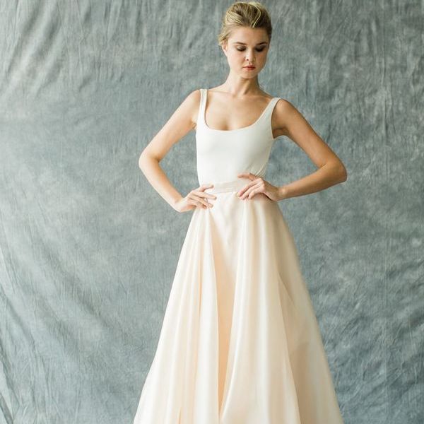Бежевый цвет с розоватым оттенком будто создан для русоволосых девушек и шатенок. Свадебный наряд в такой гамме, сделает упор на естественной красоте невесты и подчеркнет ее утонченность.