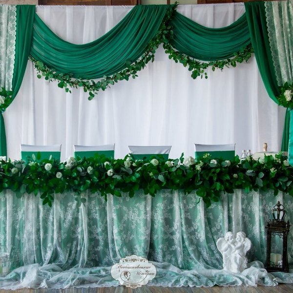 Этот глубокий цвет рушит все стереотипы и рамки. Зеленый квезаль превратит свадьбу в самое шикарное и необычное торжество. Цвет можно смело использовать в деталях свадебного платья и для оформления залов.