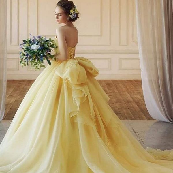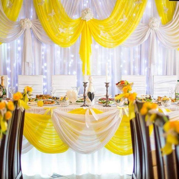 Цейлонский желтый – довольно яркий пряный экзотический цвет. Он удачно вписывается в обстановку осенней свадьбы, главное, не переборщить. Не каждая девушка отважится надеть желтое подвенечное платье, а вот для наряда подружки невесты этот оттенок – настоящая находка.