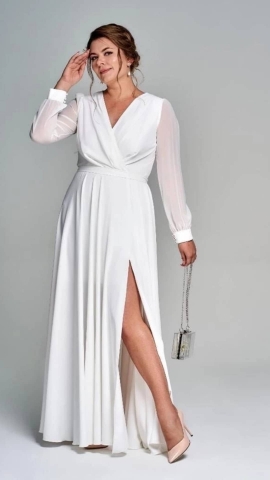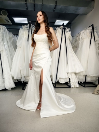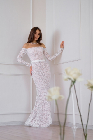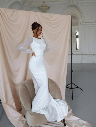 - «Русалка». Фасон с облегающей юбкой, распускающейся от уровня чуть выше или ниже колена. Это свадебное платье смело могут выбирать высокие девушки с красиво очерченными бедрами и талией.