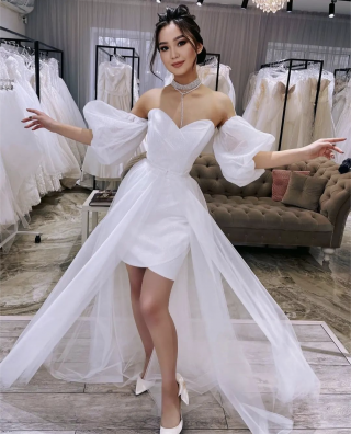 Свадебный салон республики Беларусь предлагает заказать короткое свадебное платье недорого. Это актуальный наряд, который: