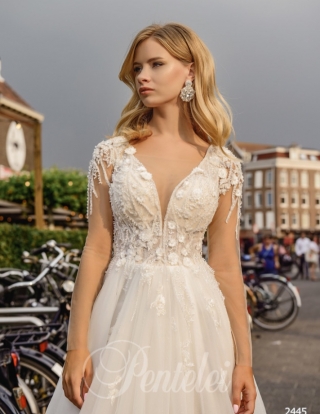 - Наличие рукавов в модели придает лику невесты интеллигентность.
